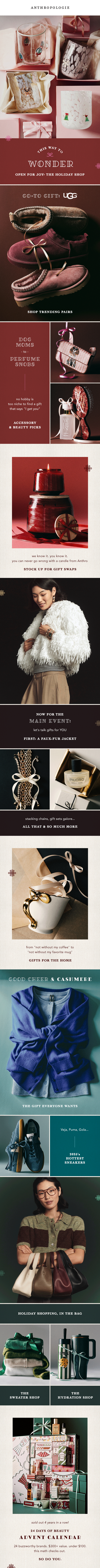 emails created for Anthropologiein collaboration with copy, merch,photo/retouching, marketing, social and web development teams.